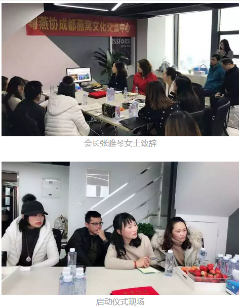 2018年1月27日下午的成都,下起了久违的第一场雪,瑞雪兆丰年,寓意着国泰民安,2018将是一个丰收之年,来自于四川各地的燕窝同业们相聚在协会常务理事单位——KISSFORRI办公室,热火朝天地举行成都燕窝文化交流中心的启动仪式,粤燕协执行会长兼秘书长张雅琴女士代表协会参加了启动仪式。