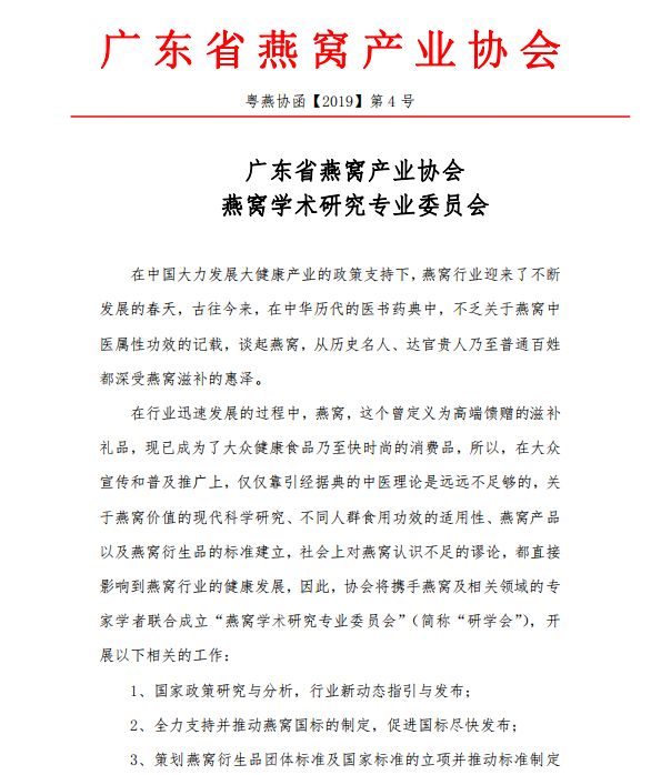 经粤燕协理事会集体通过:为深化燕窝的学术研究与标准建立,推动燕窝行业的健康发展,燕协将携手燕窝及相关领域的专家学者联合成立“燕窝学术研究专业委员会”(简称“研学会”,详见“粤燕协函【2019】第 4 号”公函),并在第四期国燕班的开班仪式上,由执行会长张雅琴及副会长团队代表,专家委代表共同参与见证“研学会”的正式启动,并给燕协专家委的专家授牌。