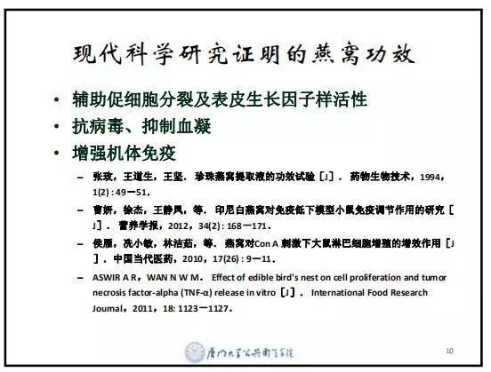 在提到燕窝功效时,很客观地提出“燕窝不是万能的,但是燕窝也不是无能的”,并以大量的实验数据和分析,去证明燕窝不同成分组合所体现不同的功效。