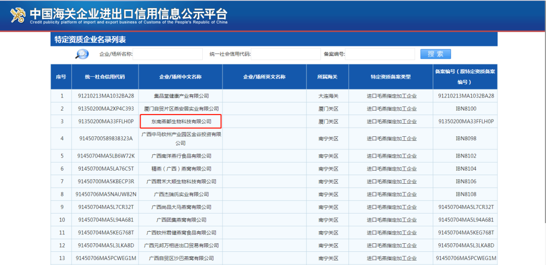 东南燕都生物科技有限公司是一家集高品质燕窝及燕窝衍生品研发、生产(OEM、ODM)及销售为一体的综合性代工企业,以东南燕都项目为依托致力打造强供应链体系,成功获批进口毛燕指定加工资质(2020年11月26日,中华人民共和国海关总署公布名单),从而为行业配套正规、合法、安全的毛燕原料。