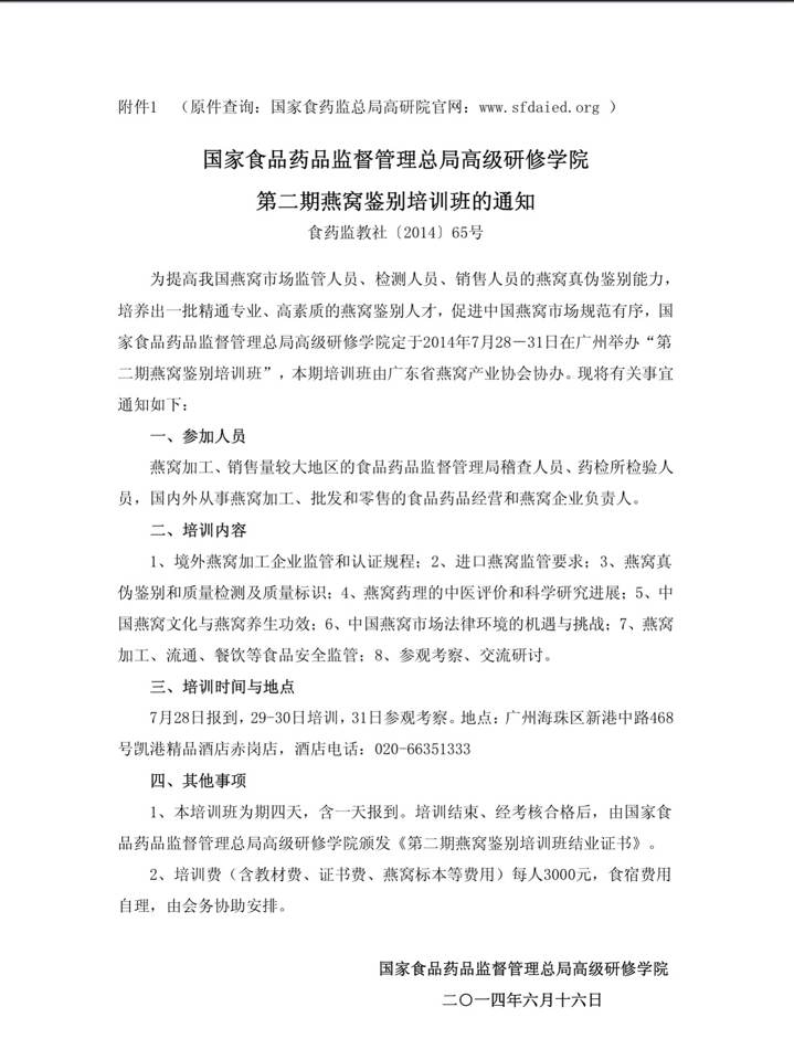 参加培训是一种投资,不仅是为了学习知识、拿个专业证书,更是拓展人脉圈的捷径,一不小心,寻觅已久的他和她就成了自己的同窗好友,这其中暗藏的商机该有多大?世界上最昂贵的是时间,最便宜的就是学习。来吧,国家食药监总局高级研修学院主办的【全国第二期燕窝鉴别培训班】欢迎你,国内外的政企同学们等着你,对你我来说,有时候人脉关系比专业知识更重要!