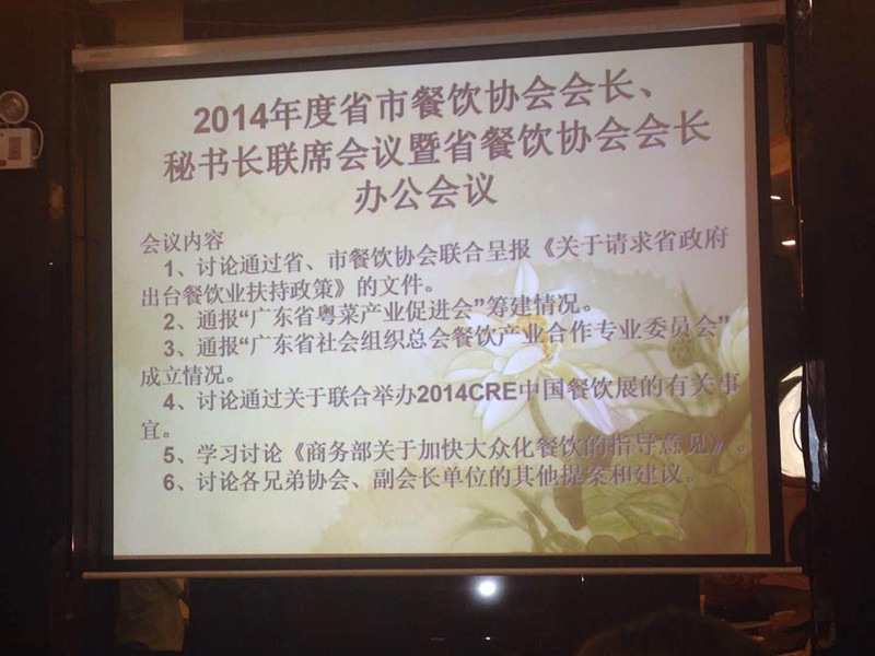 9月2日,广东省燕窝产业协会会长谭海城、广东省燕窝产业协会执行会长兼秘书长徐兵,参加2014年度省市餐饮协会会长、秘书长联席会议暨省餐饮协会会长办公会议。