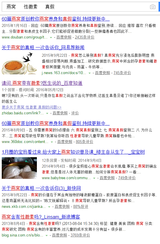 本着崇尚科学,不轻信谣言的求证原则,某蛋又大量搜索有关燕窝的信息。