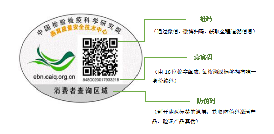认准“一品一码”标识。据国家质检局“燕窝溯源管理服务平台”公布,进口燕窝产品的销售包装上均需加贴“检验检疫科学研究院”颁发的CAIQ溯源标签,它就像燕窝的“身份证”,记录了这盏燕窝的全部身世,实现了“燕屋—加工企业—进出口商—经销商—消费者”的全程追溯维权手段,方便消费者识别和选购。这样有据可查的燕窝,您可以放心吃、大胆补!