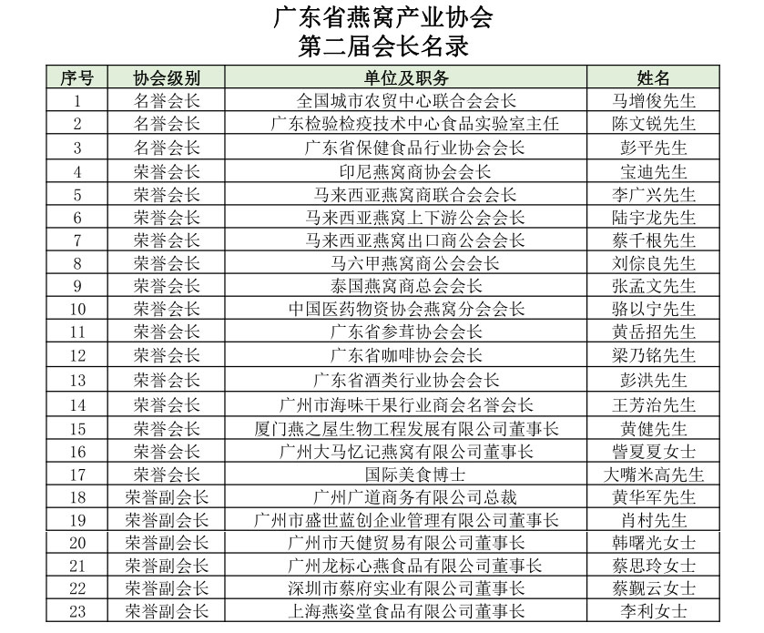 广东省燕窝产业协会第二届会长及秘书处名录-燕窝市场门户网站