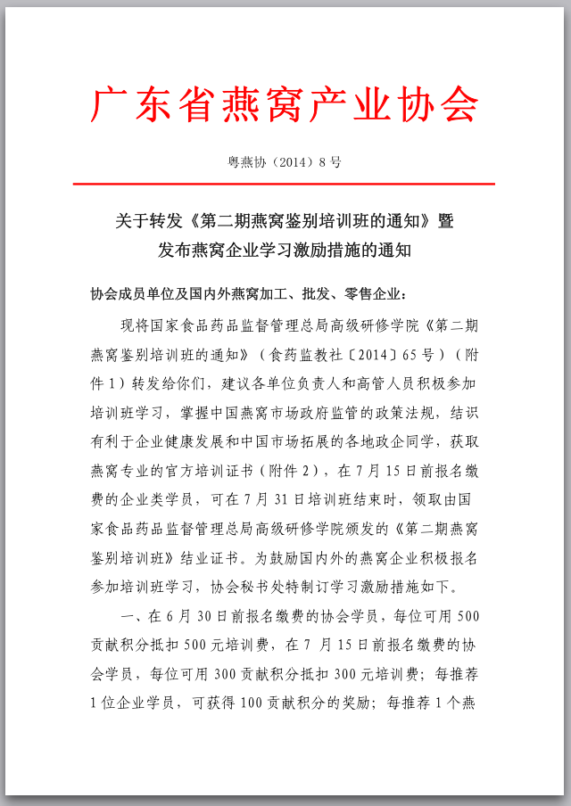 参加国家级培训班、加入专业协会,平台、合作、团队、渠道等燕窝事业的成功要素都有了!